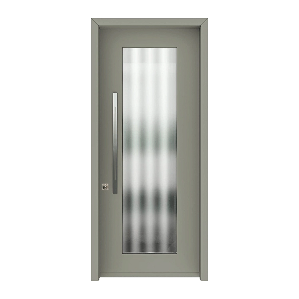 דלת כניסה דגם 3009 מסדרת חלונות בעיצוב מודרני עם חלון אנכי רחב בזכוכית מחורצת לכניסת אור רך.