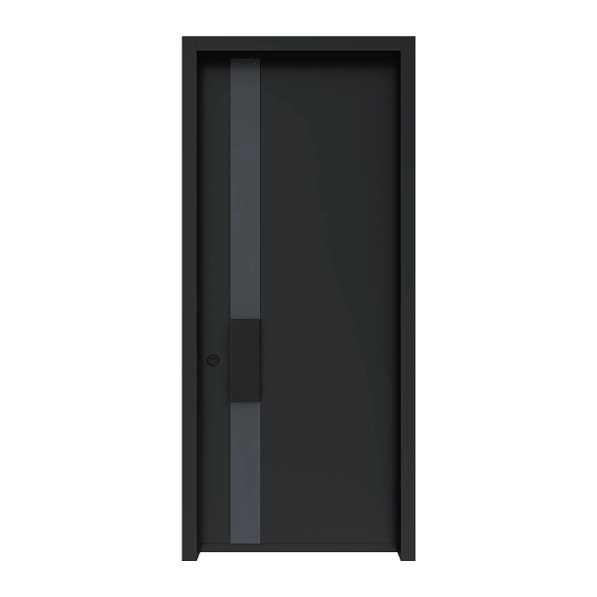 דלת כניסה דגם 4025 מסדרת ידיות בגימור כהה עוצמתי עם פס אנכי מודגש לנוכחות יוקרתית ומודרנית.