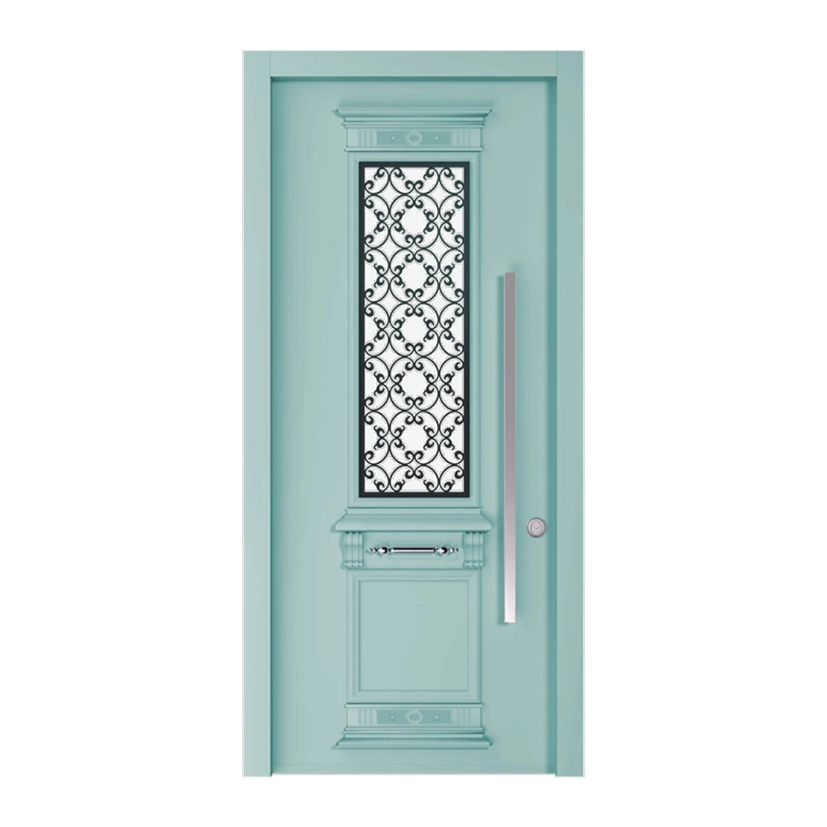 דלת כניסה דגם 6012 בסגנון יווני קלאסי עם חלון זכוכית בדוגמת נפחות צפופה ועשירה.