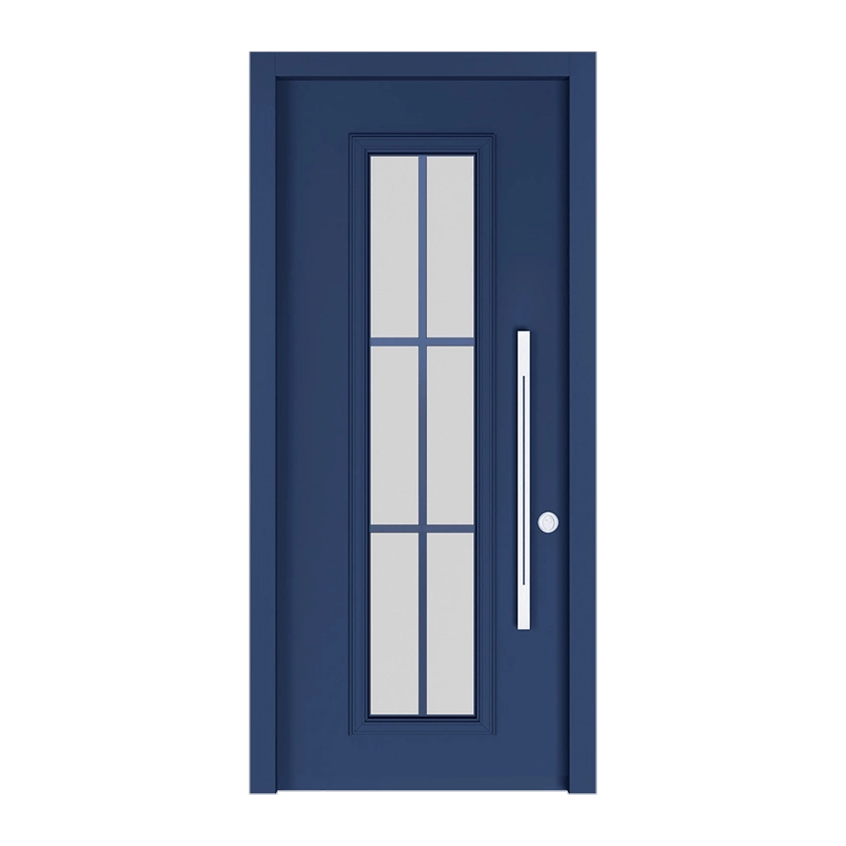 דלת כניסה דגם 7014 מסדרת מרקורי עם חלון זכוכית בחלוקה סימטרית נקייה למראה מודרני ומדויק.