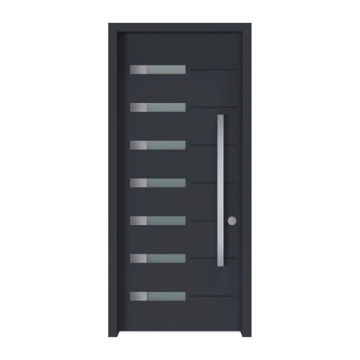 דלת כניסה דגם 7504 בעיצוב מודרני עם אלמנטים אופקיים וחלונות דקורטיביים.