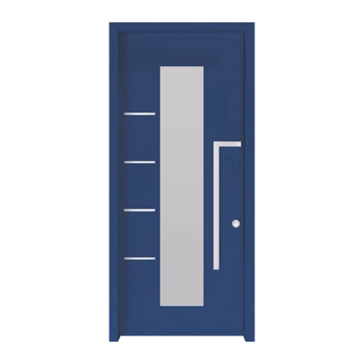 דלת כניסה דגם 7506 בעיצוב מודרני עם חלון מרכזי ואלמנטים אופקיים דקורטיביים.