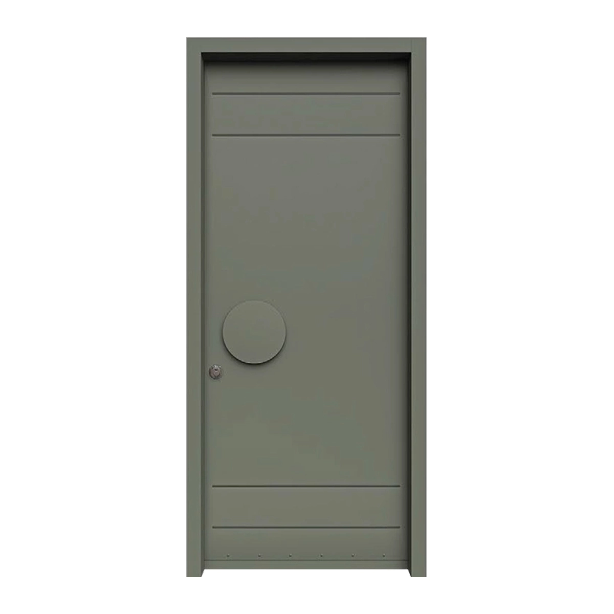 דלת כניסה דגם 6512 בעיצוב מודרני עם פסים שקועים ואלמנט דקורטיבי עגול.