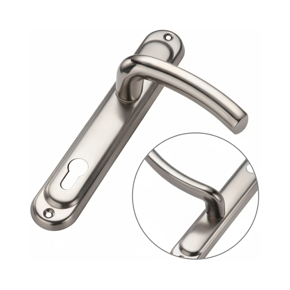 ידית איכותית עם פלטה לדלתות, מגיעה במספר מידות להתאמה מושלמת לצרכי ההתקנה והעיצוב.
