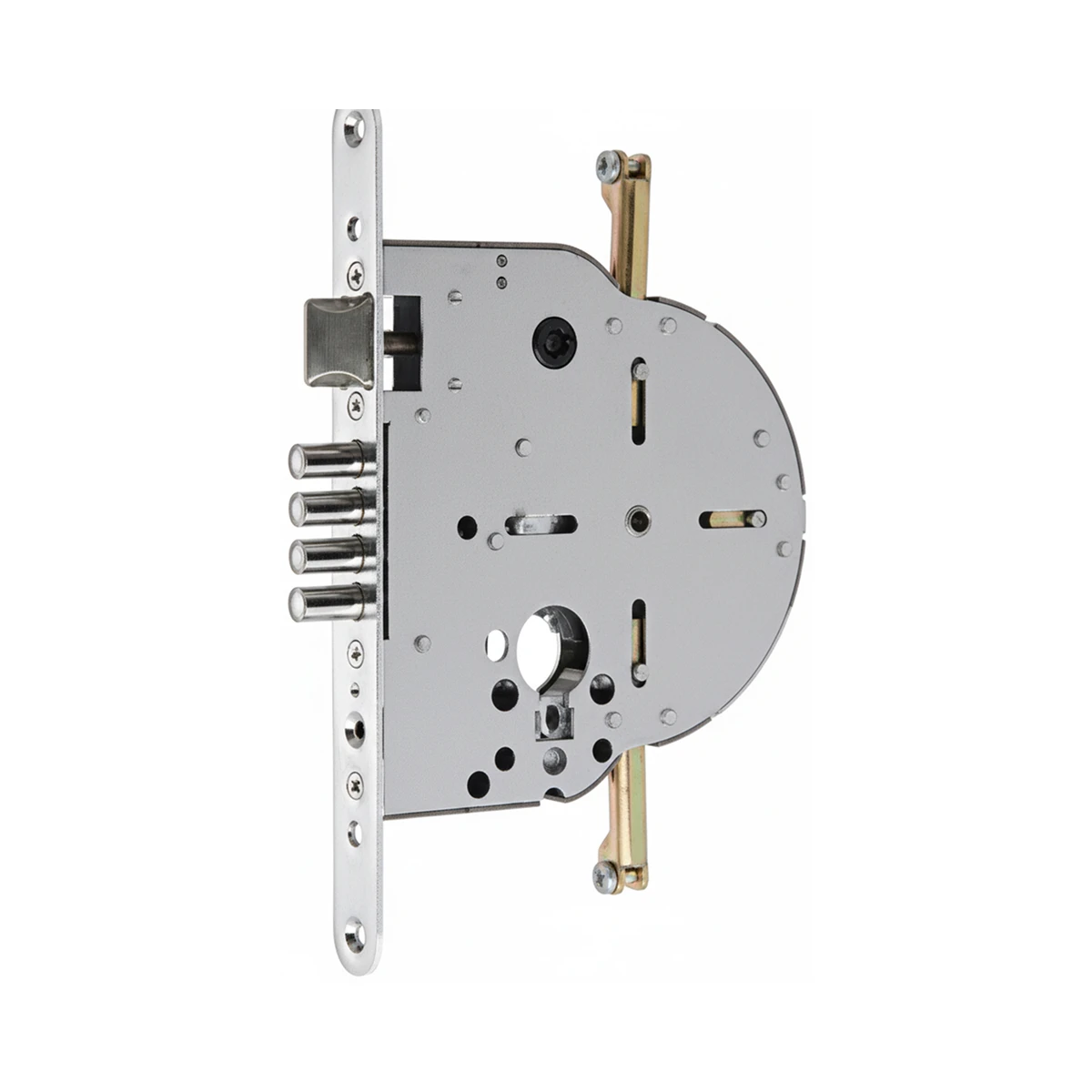 מנגנון לפלדלת עם 4 בריחים ללא בריח אחורי, מספק נעילה חזקה ובטוחה לשימוש יומיומי.