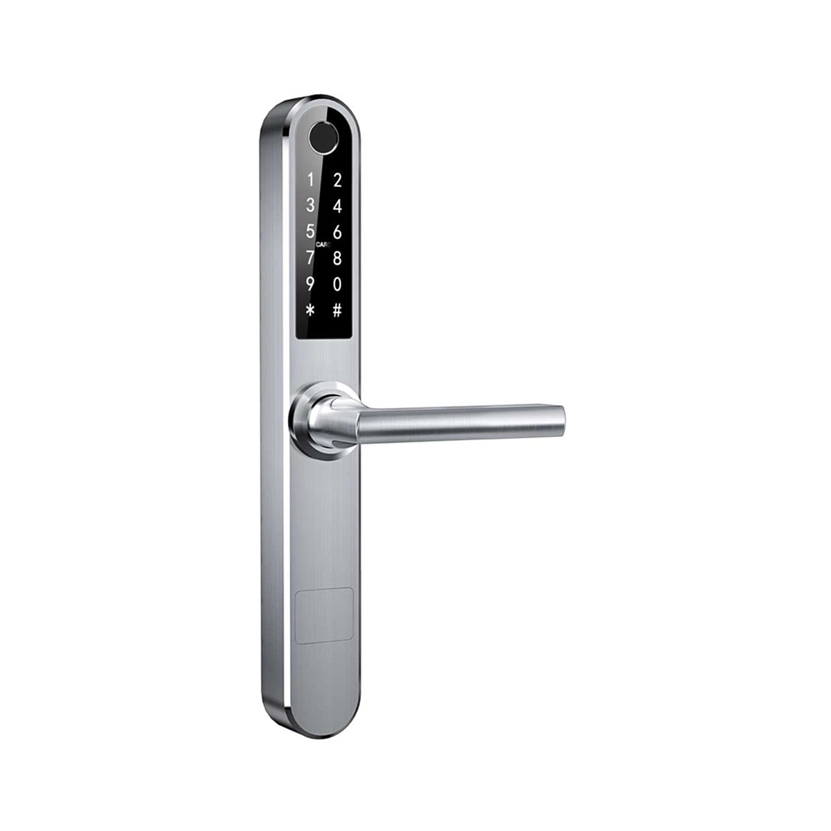 מנעול חכם עם טביעת אצבע, קוד, אפליקציה וצ’יפ קירבה. מתאים לדלתות אלומיניום ועץ, כולל ניהול משתמשים ושליטה מרחוק לשימוש בטוח ונוח.