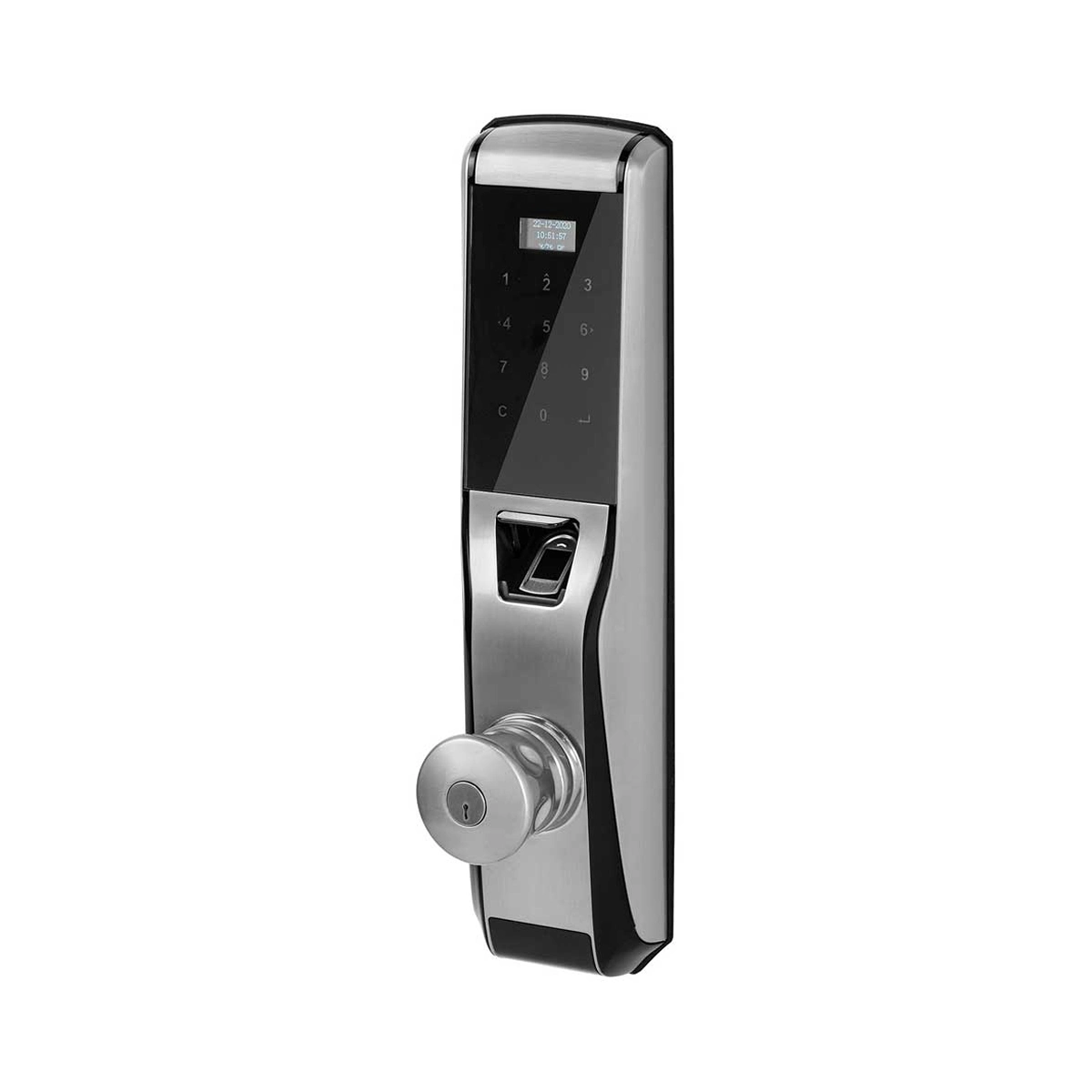 מנעול חכם עם טביעת אצבע, קוד, צ’יפ קירבה ומפתח. כולל נעילה אוטומטית, ניהול הרשאות ומעקב כניסות לשימוש בטוח ונוח.