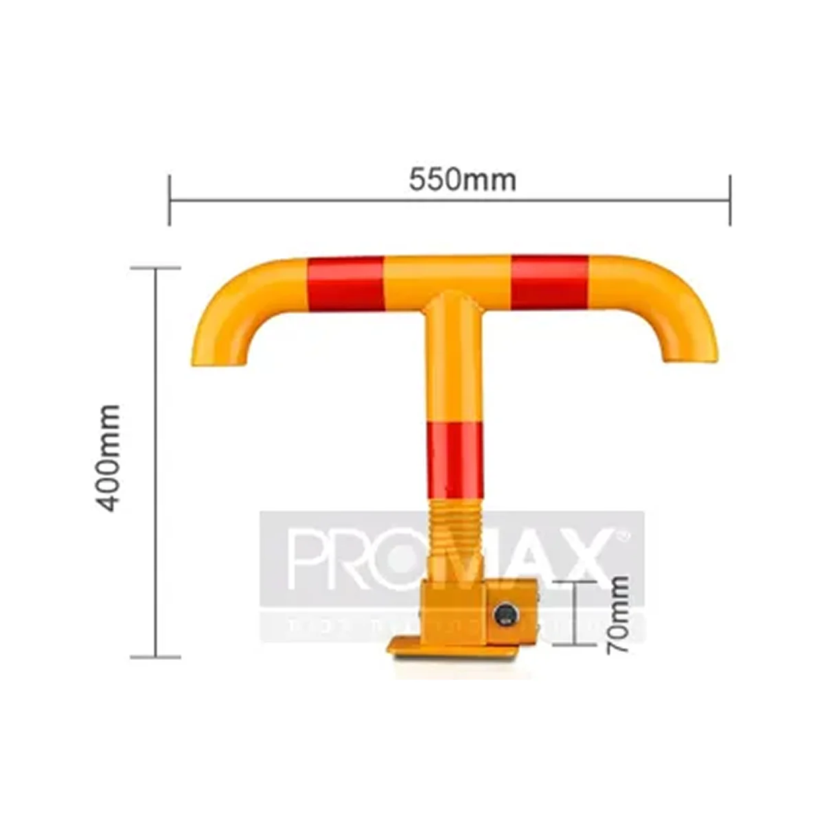 מחסום חניה דגם T מתקפל מבית PROMAX דגם 340032 עם מנגנון נעילה ידני מיועד להגנה על מקום חניה פרטי ומתאים להתקנה קבועה בבית, בעסק או בחניון משותף