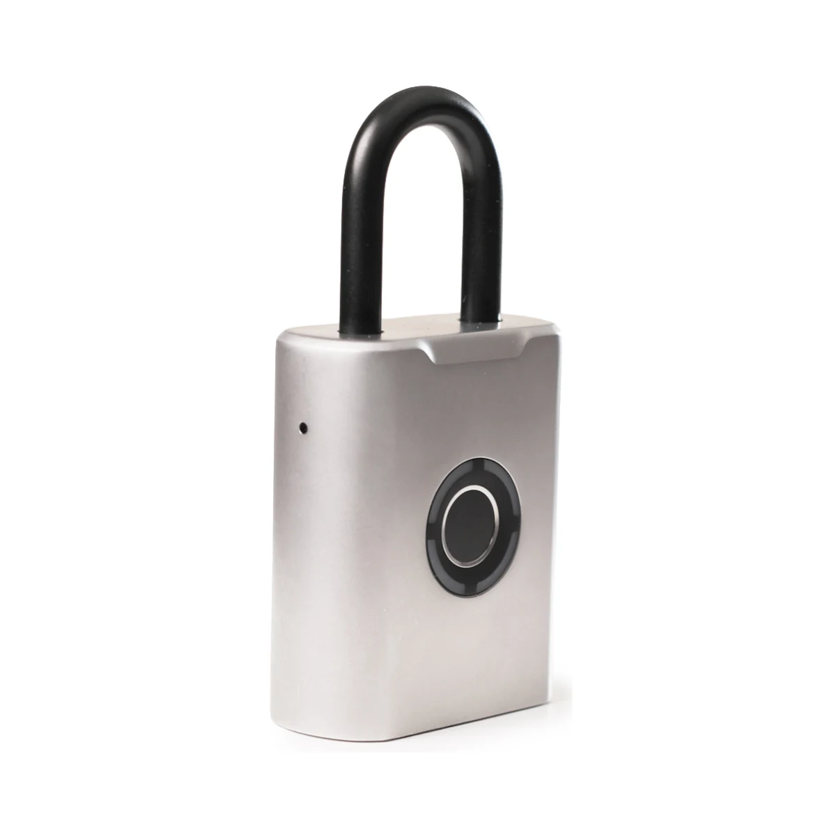 מנעול תליה ביומטרי חכם מבית Rav Bariach המאפשר פתיחה באמצעות טביעת אצבע ואפליקציה, כולל פתיחת חירום USB ומתאים לשימוש חוץ ופנים עם תקן IP66